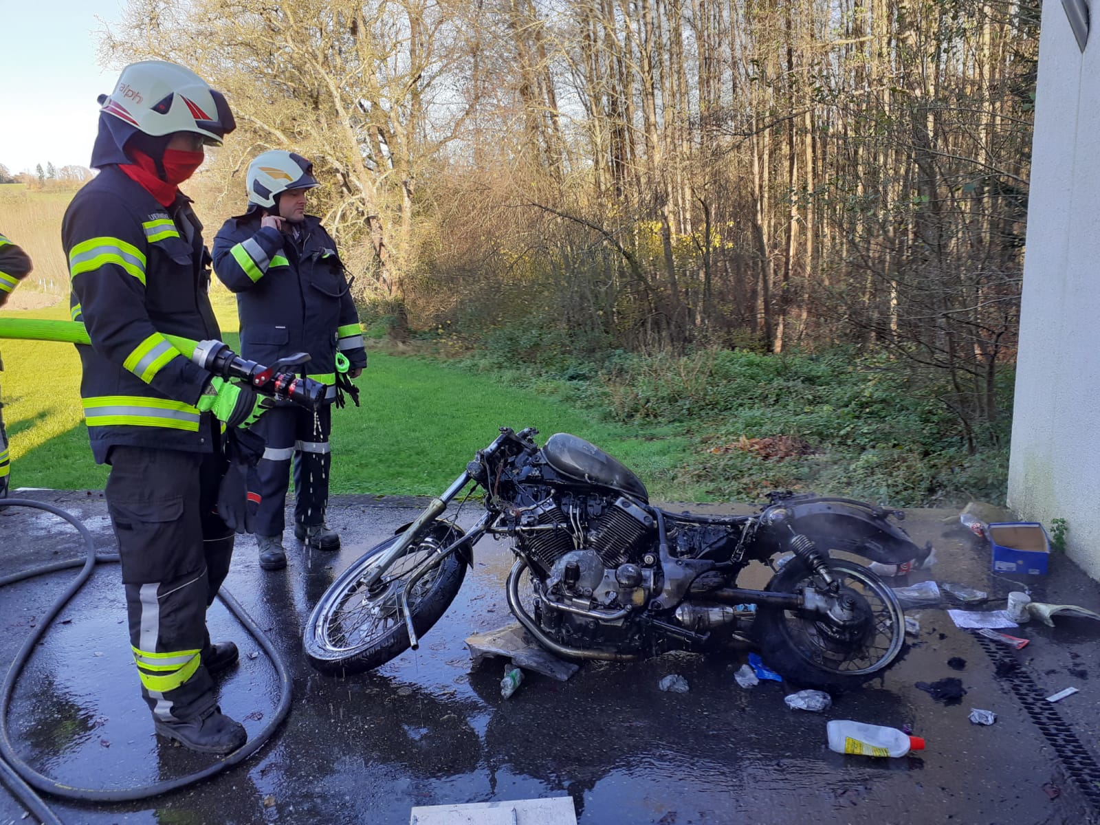 Am Freitag den 06. November 2020 um 14:18 wurde die FF-Vestenthal zu einem Garagenbrand in Brunnhof alarmiert. Ein Motorrad ist in einer Garage aus noch nicht geklärtem Grund in Brand geraten. Die Atemschutztrupps öffneten das Tor und löschten die in Brand geratenen Fahrzeuge. Anschließend wurde mittels Wärmebildkamera die Garage nach Glutnestern abgesucht.